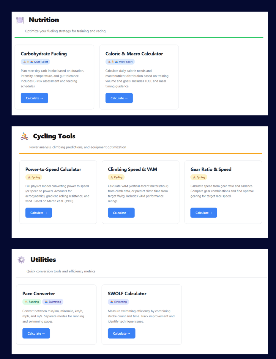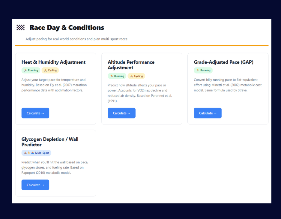 Each calculator is built from peer-reviewed models. Equations are shown. Assumptions and limitations are clearly stated. No black-box outputs.