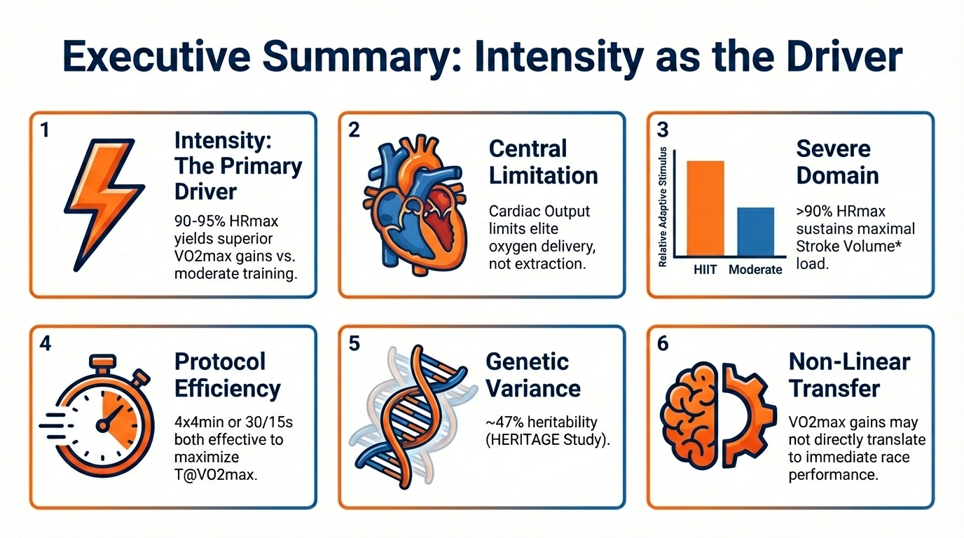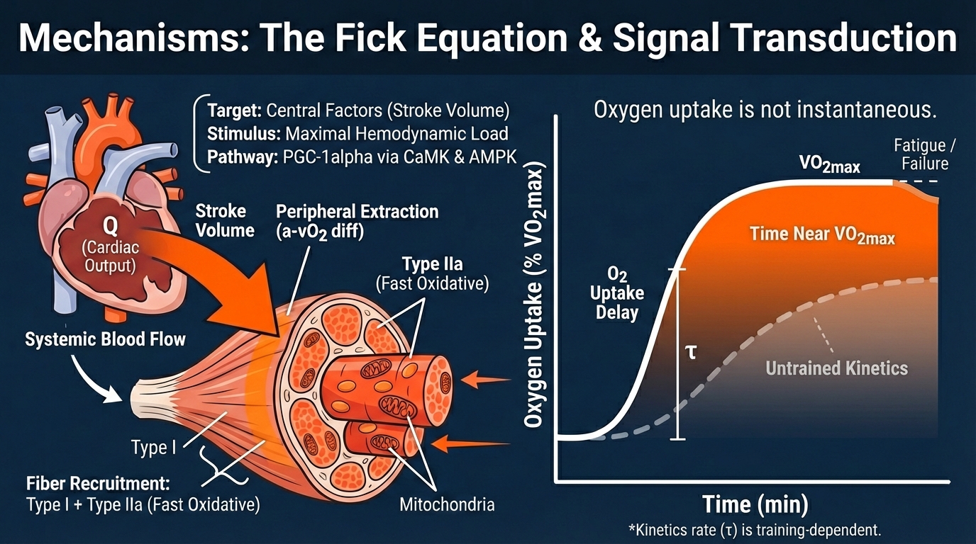 In the architecture of endurance performance, a fundamental tension exists between the accumulation of low-intensity volume and the precise application of severe-intensity stimuli. While mitochondrial density and capillary proliferation respond robustly to volume, the central component of aerobic power—maximal cardiac output—requires a distinct hemodynamic stressor.