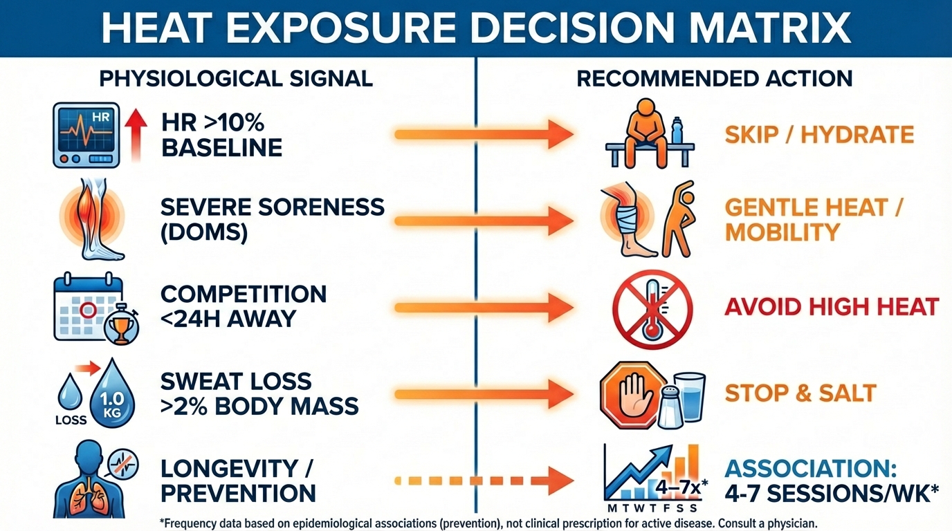 It addresses the physiological mechanisms of heat adaptation, cardiovascular remodeling, and neuromuscular recovery. The recommendations assume a baseline of health free from unstable cardiovascular conditions and are distinct from active recovery modalities or cold therapy.