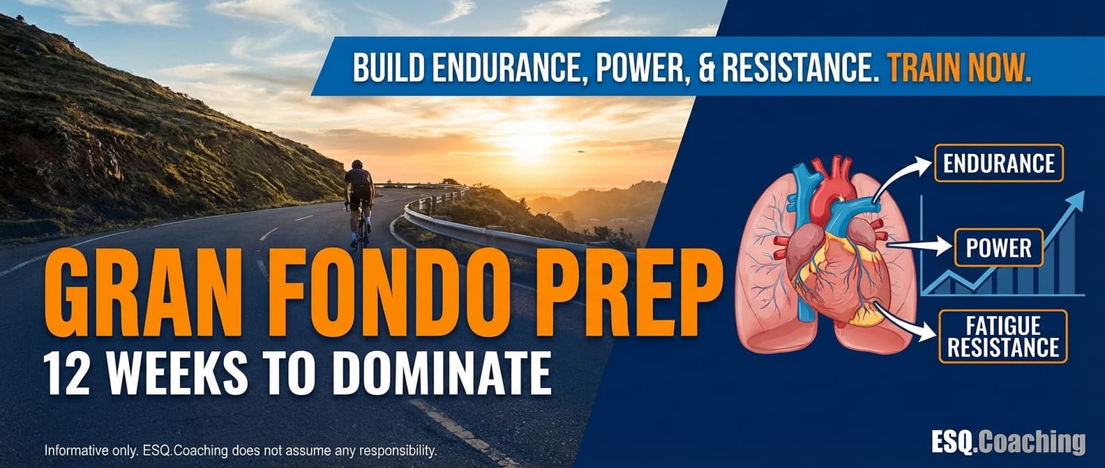 Ready to dominate your next Gran Fondo? Our 12-Week Comprehensive Training Plan is designed to build your endurance, power, and fatigue resistance for peak performance.
